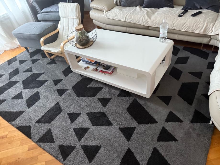 Tepih veliki, gotovo novi, jako dobre kvalitete, estestki lijep, moderan i kvalitetan, super za odrzavanje, dimenzije 230x290 - prodajem. Takoder stolic, noviji, ocuvan, estetski jako moderan, prodajem.