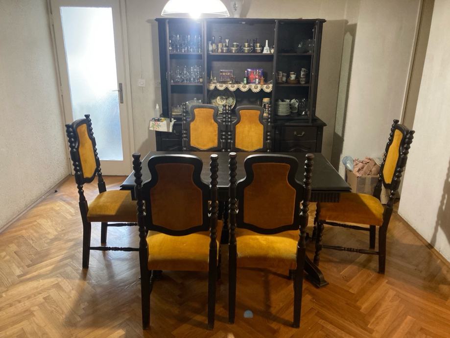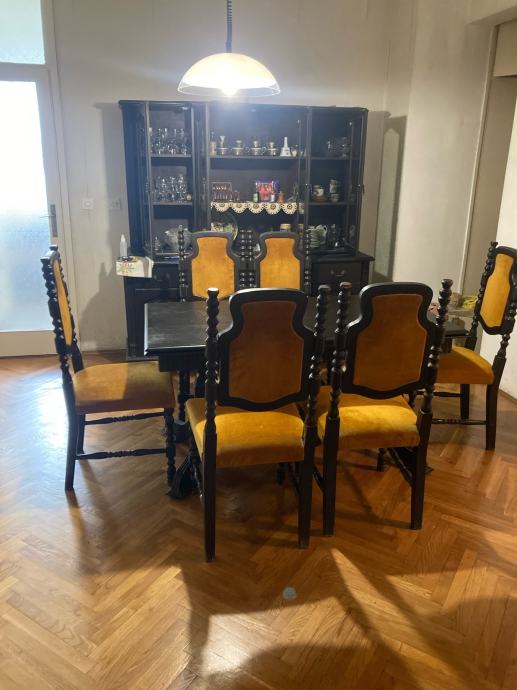 Prodajem blagovaonicu sa slika: stol D 138 x Š 80 x V 74 cm, razvlači se po duljini za još pola metra, 6 tapeciranih stolica i kredenca sa slika sa svim sadržajem u njoj.