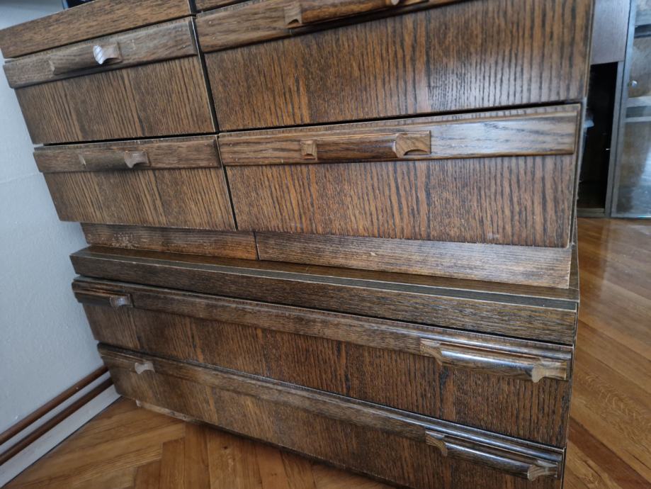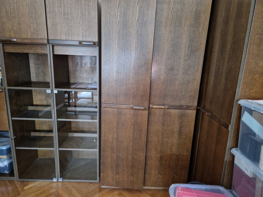 Sastoji se od dva velika ormara ,dva staklena djela,dvije "kutije" manje sa ladicama i jednom vecom "kutijom" sa duzim ladicama.