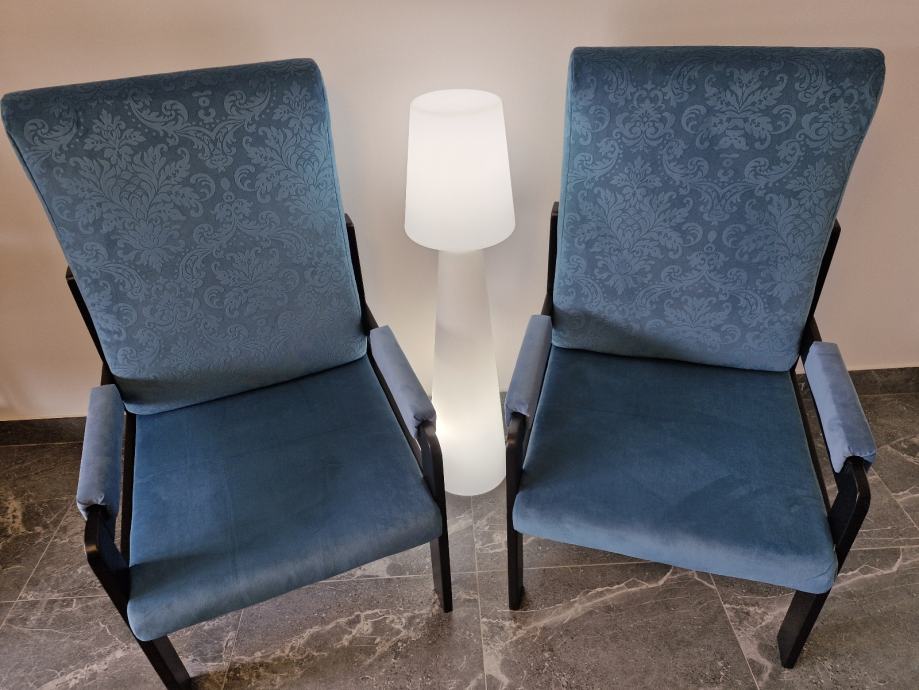 Noge od bukve,naslon i sjedište od pravog drva sa šperpločom.