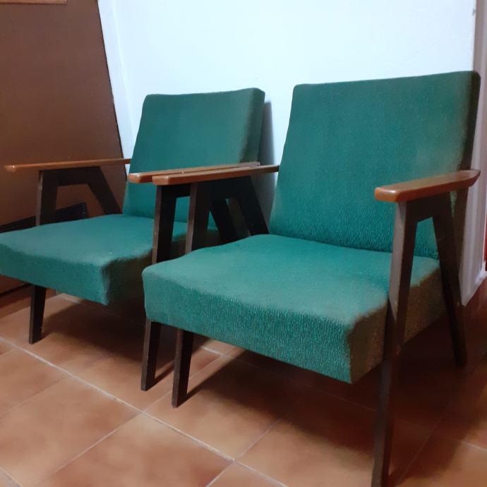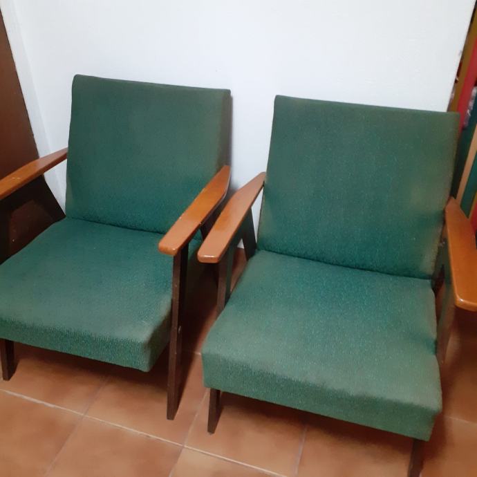 Retro fotelje iz 60-ih godina, potrebno pretapecirati. Drvo u odličnom stanju. 2 komada.