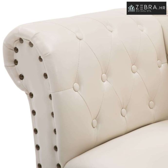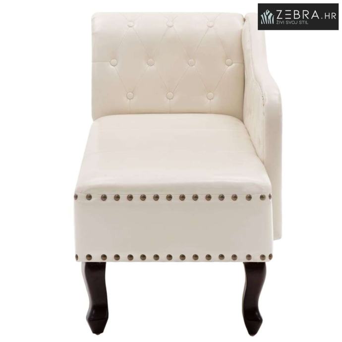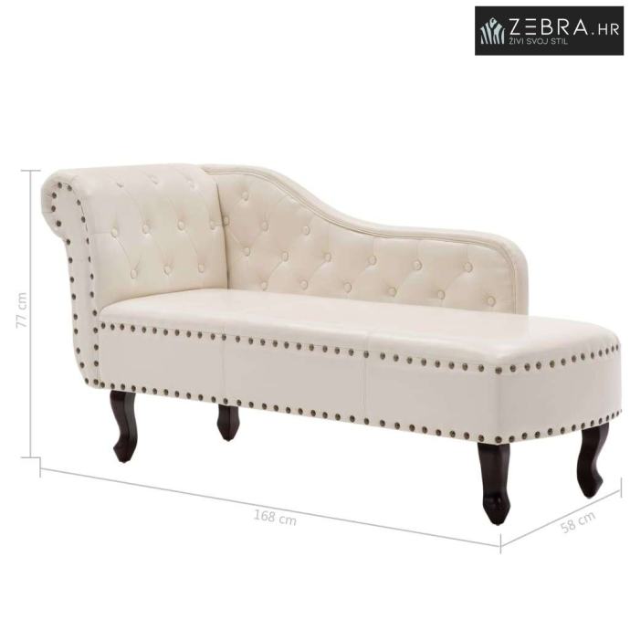 Odmaranje na ovom antiknom ležaju krem bijele boje, pravo je zadovoljstvo i užitak. Njegov elegantan dizajn se vrlo lako uklapa u svaki stil uređenja. Ležaj ima naslon za ruke na lijevoj strani koji pristaje ostalim komadima klasičnog Chesterfield namještaja.