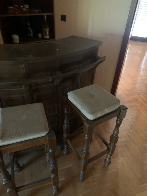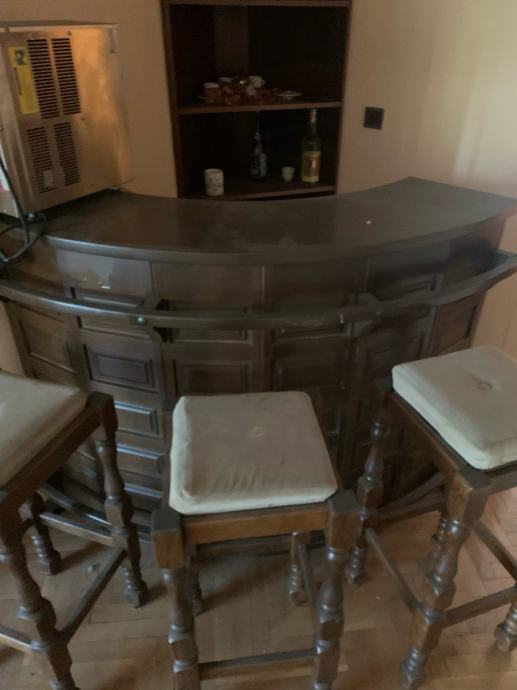 Šank dreveni, sa 3 drvene stolice, stanje 10/10