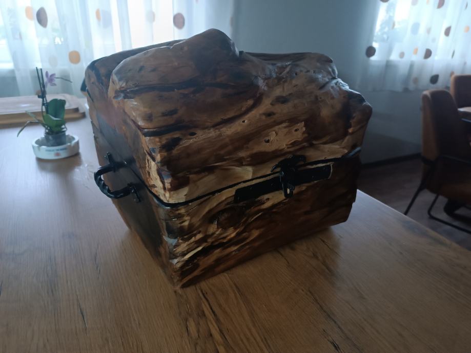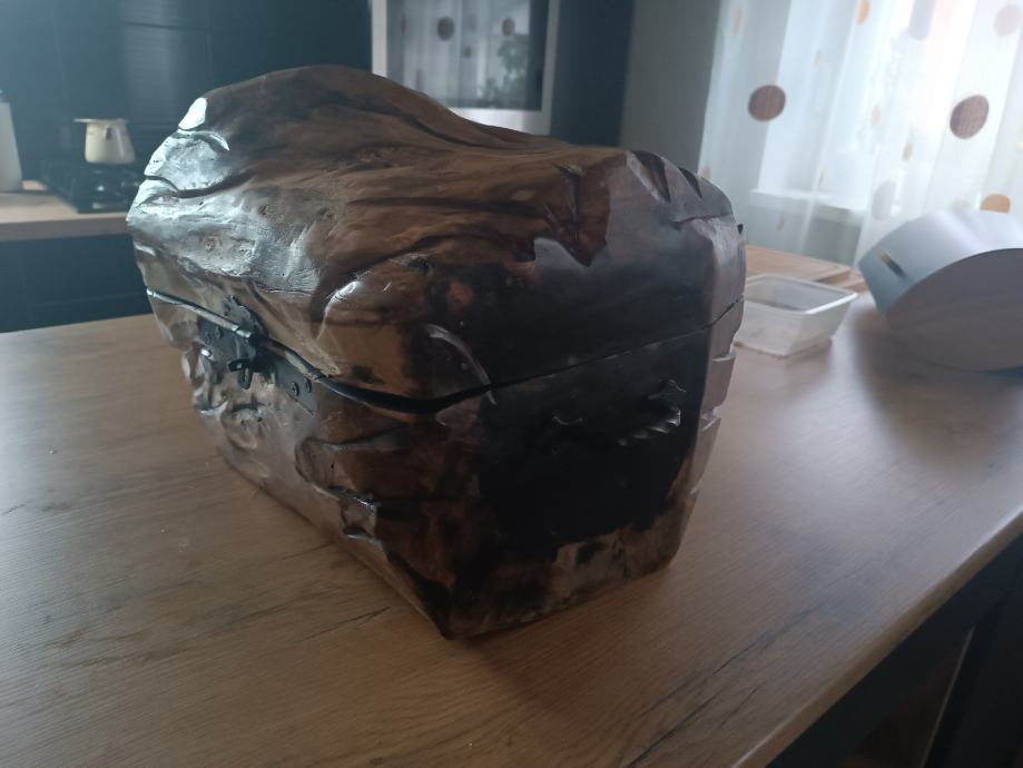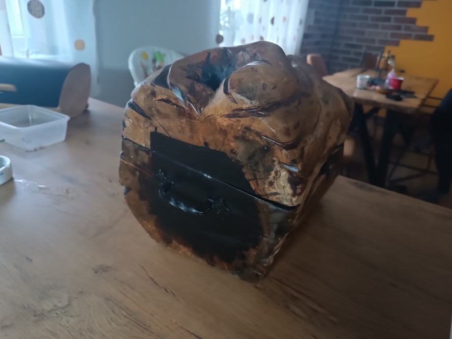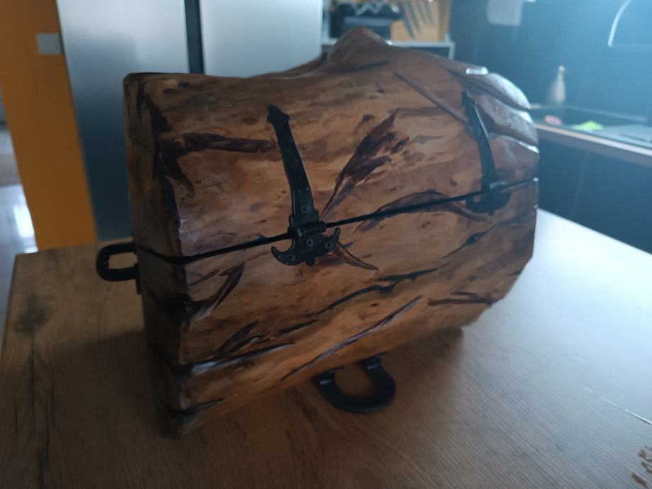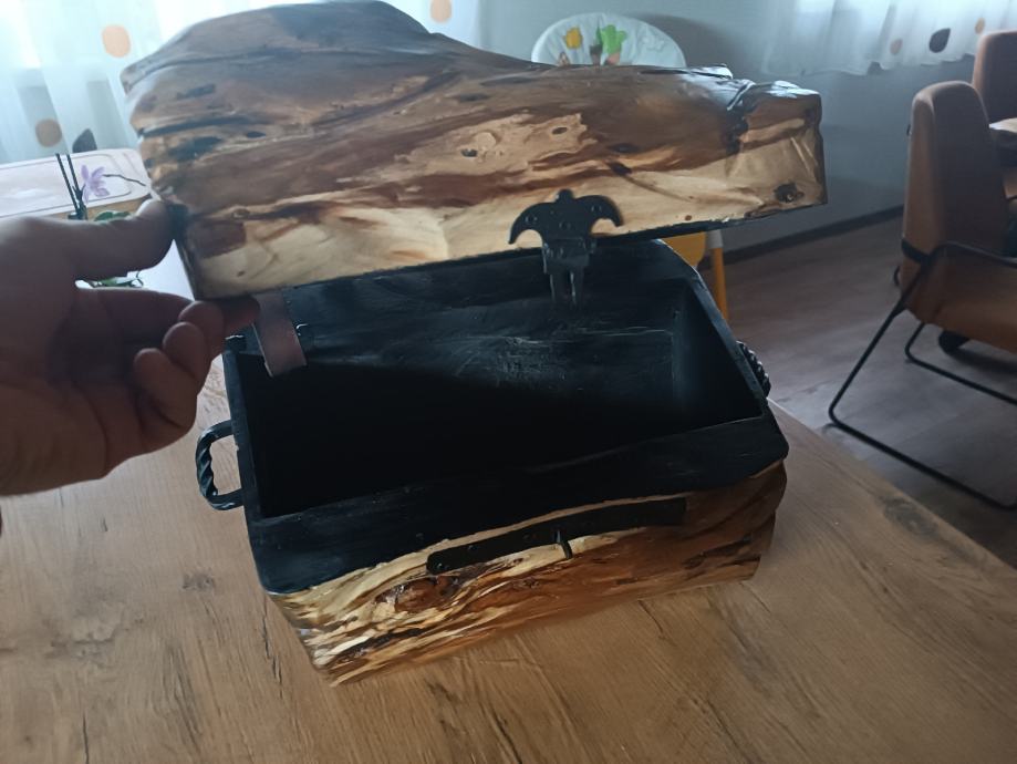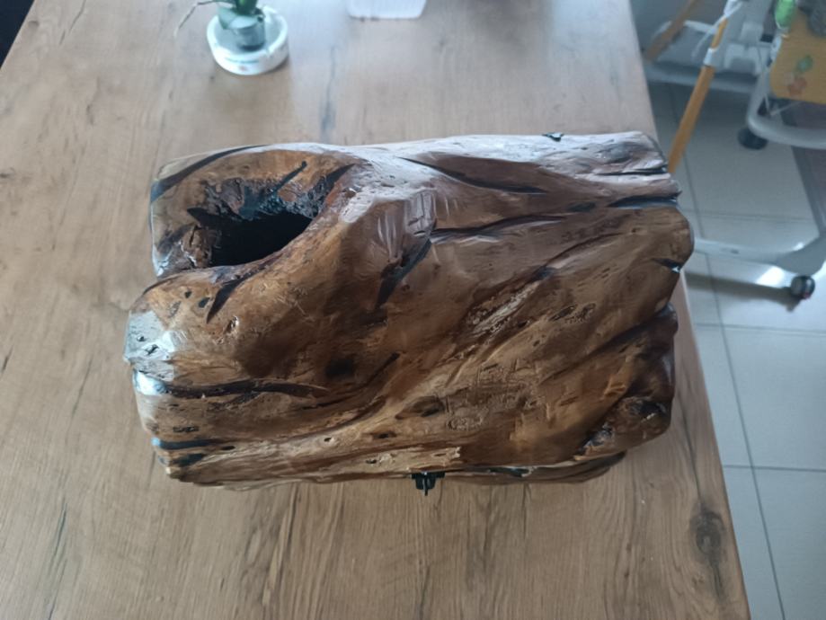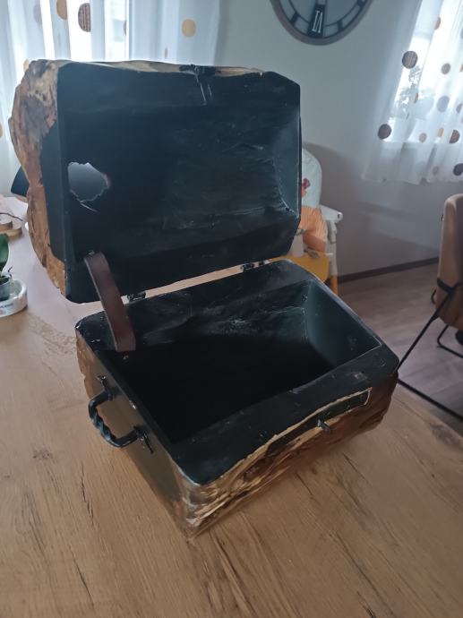 Prodajem dekorativnu skrinju rucno radjenu u kombinaciji sa epoxy smolom. Radjena je od jednog komada drveta. Lakirana mat lakom