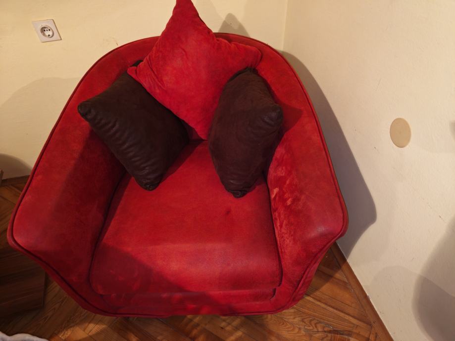 Očuvana je , ali treba kemijsko napraviti. Fotelja dimenzije su 90*80