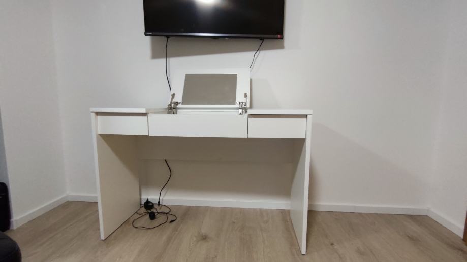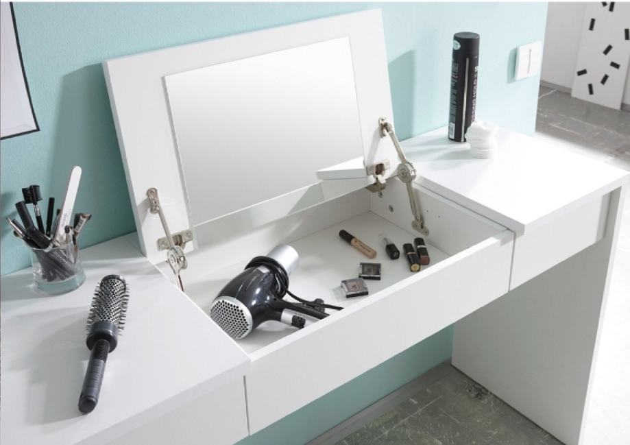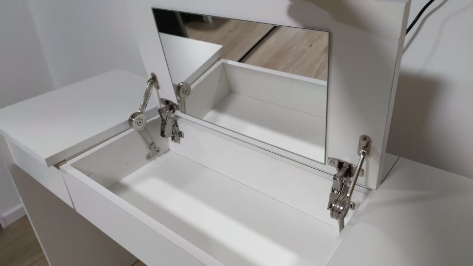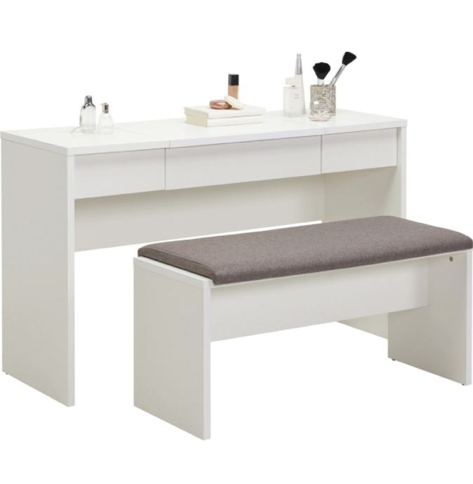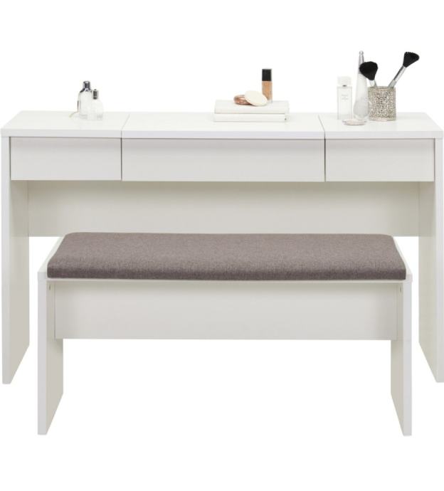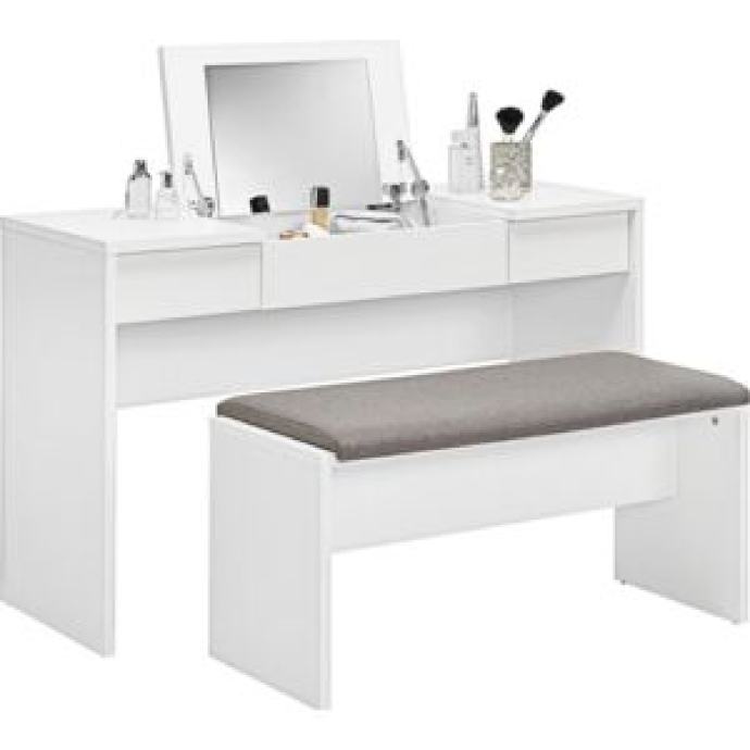 Uz ovaj stol za šminkanje Lipstick ženska srca zakucat će brže. Elegantan stol bijele boje, dimenzije Š/V/D 125 × 76 × 42 cm nudi 2 ladice za spremanje lakova za nokte, pudera, korektora, ruževa za usne i nakita koji će Vam uvijek biti pri ruci. Na gornjoj strani stola nalazi se sklopivo ogledalo, s kojim ćete imati najbolje uvjete za Vaš styling. Uz stol dolazi i stabilna klupa dimenzije Š/V/D 97 × 47 × 42 cm s tapeciranim sjedištem. S ovim stolom za šminkanje priuštite si svoj osobni kozmetički kutak za uživanje.
