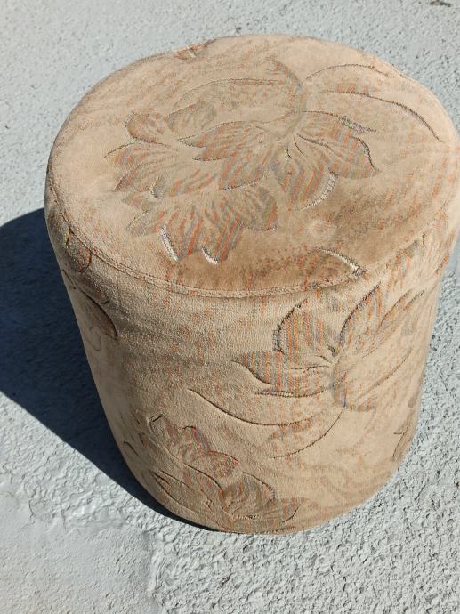 Prodajem dobro uščuvan i ispravan tabure presvučen tkaninom. Uzorak sa cvjetovima je visine 45 cm, promjera 38 cm.