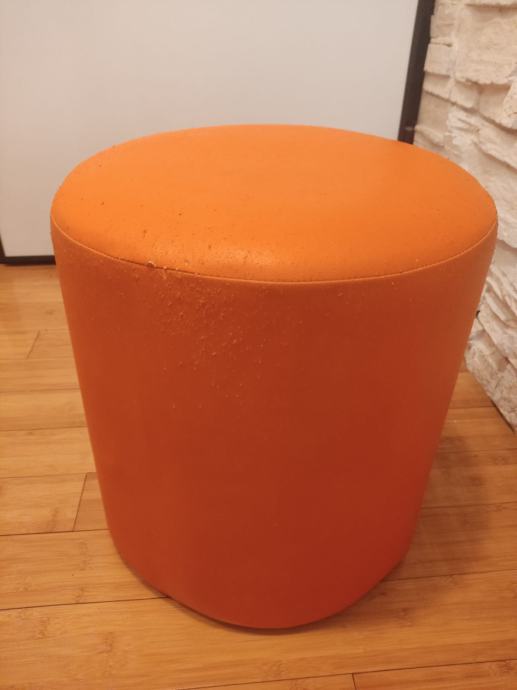 Narančasti tabure. Ima vidljiva oštećenja. Širina tabure 40cm, a visina 42cm.