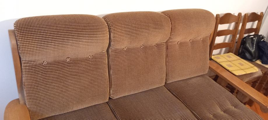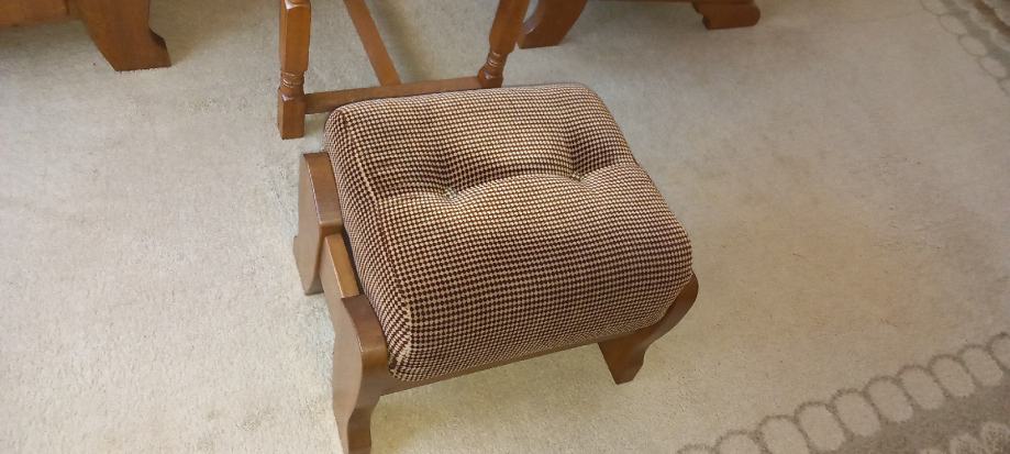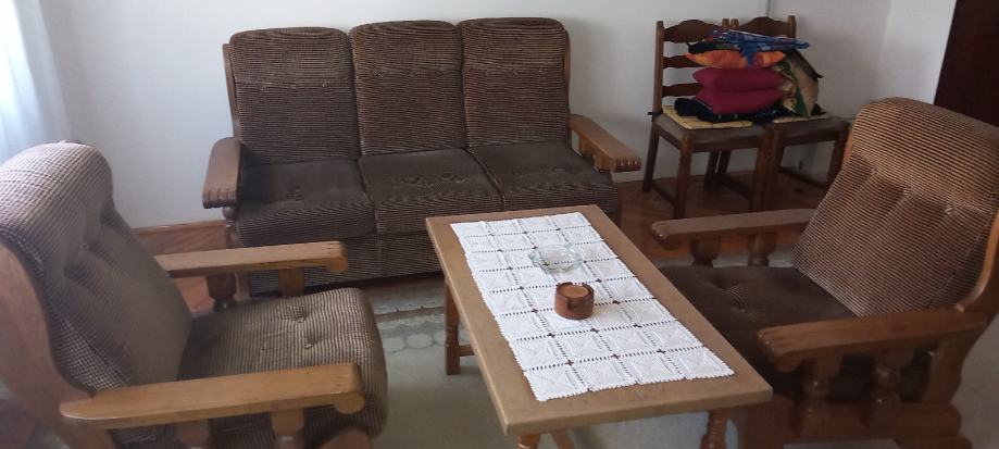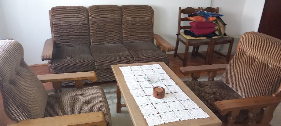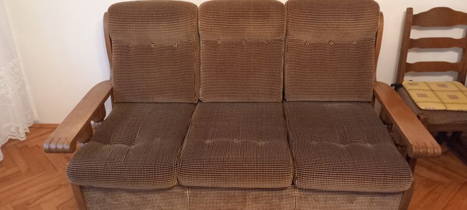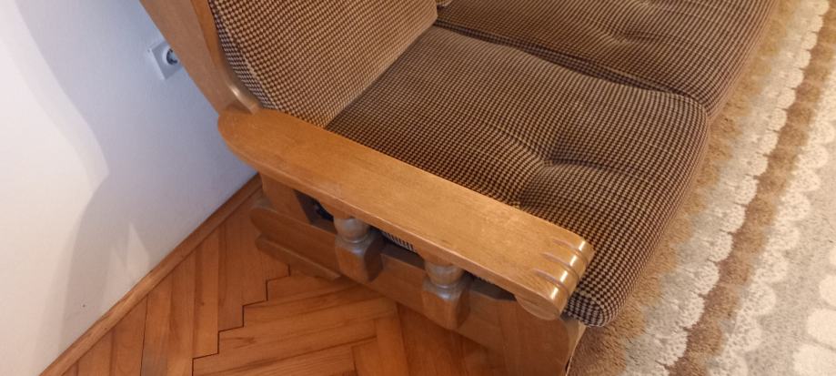 Trosjed, dvije fotelje, tabure i stolić kao nove, jako malo korišteno, sve puno drvo, u savršenom stanju! Trosjed na razvlačenje. Dugo Selo (ZG županija). U jako dobrom stanju, slobodno dodjite pogledati, bez obaveze!