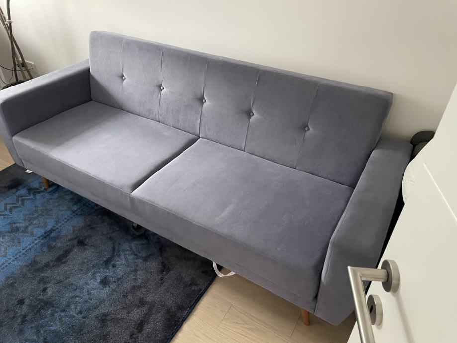 Prodajne trosjed u izvrsnom stanju, korišten samo za sjedenje nekoliko puta, nalazi se u radnoj sobi pa mu svrha nije bila za neko dugo sjedenje ili spavanje.