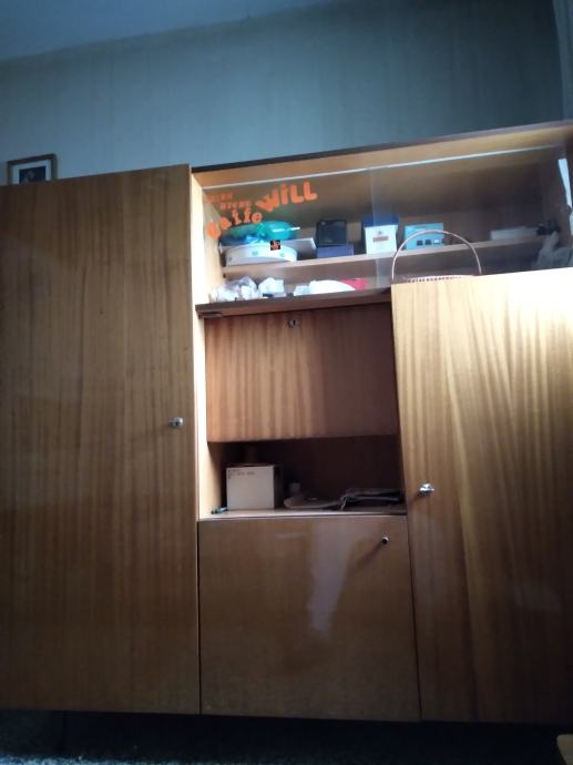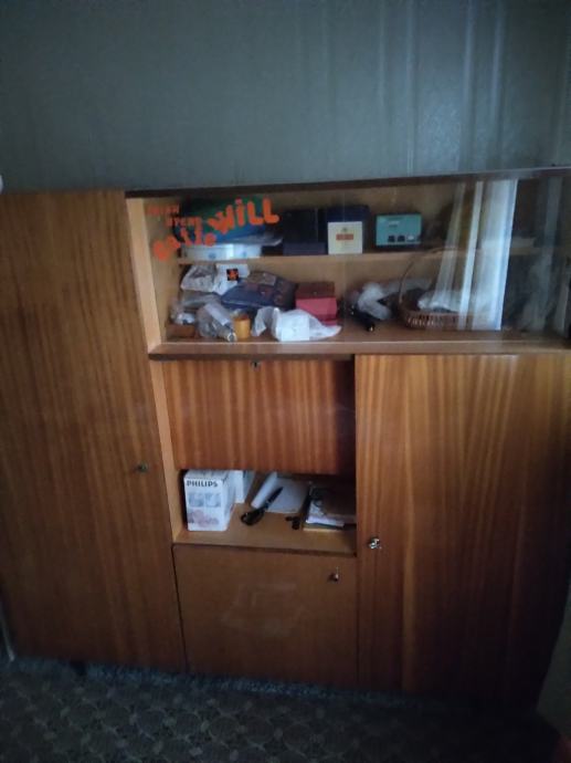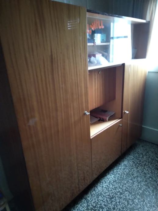 Vintage ormar, sastoji se od dijela za vješanje garde, kredenca i dijela s policama. Visina 165 cm, dužina 180 cm.