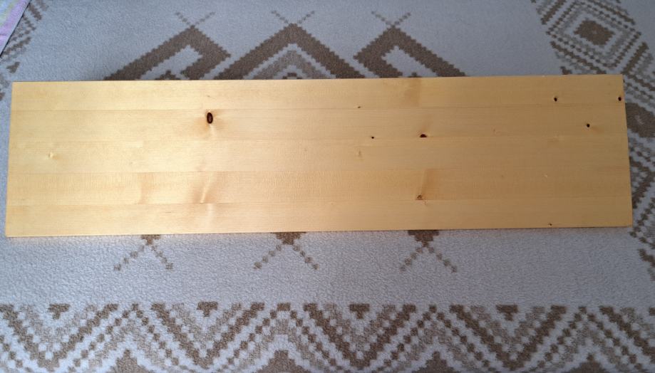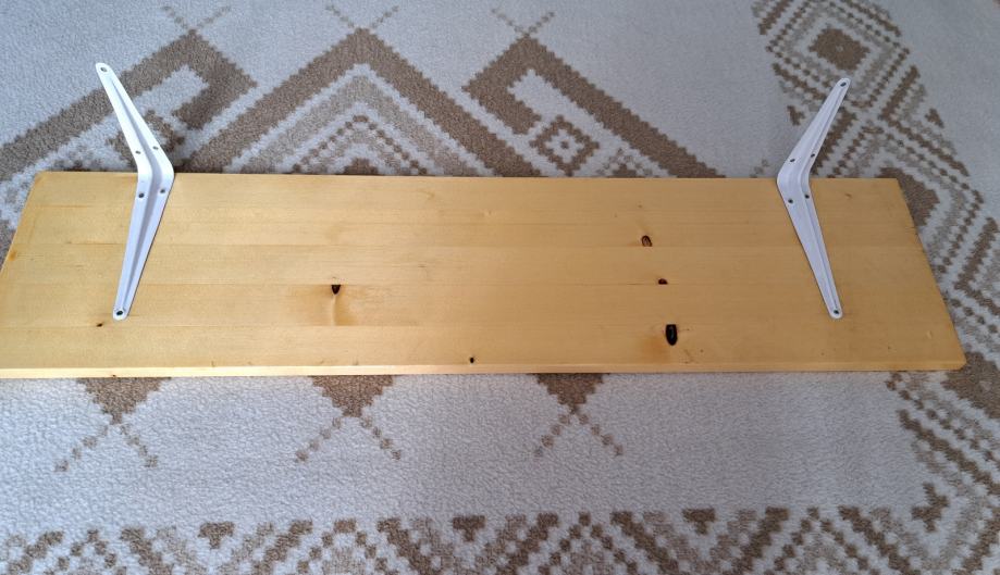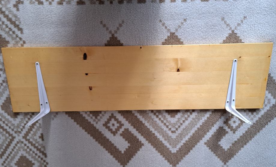 Polica je lakirana i ima kutne nosače. Dimenzija je dužine 100 cm, širine 25 cm i debljine 1.8 cm.