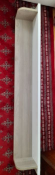 Prodajem zidne police, kao nove , 4 komada, veličine: dužina 1,50 m, visina 26 cm, širina police 18 cm, težina 10 kg (puno drvo). Cijena 40 €/1 kom.
