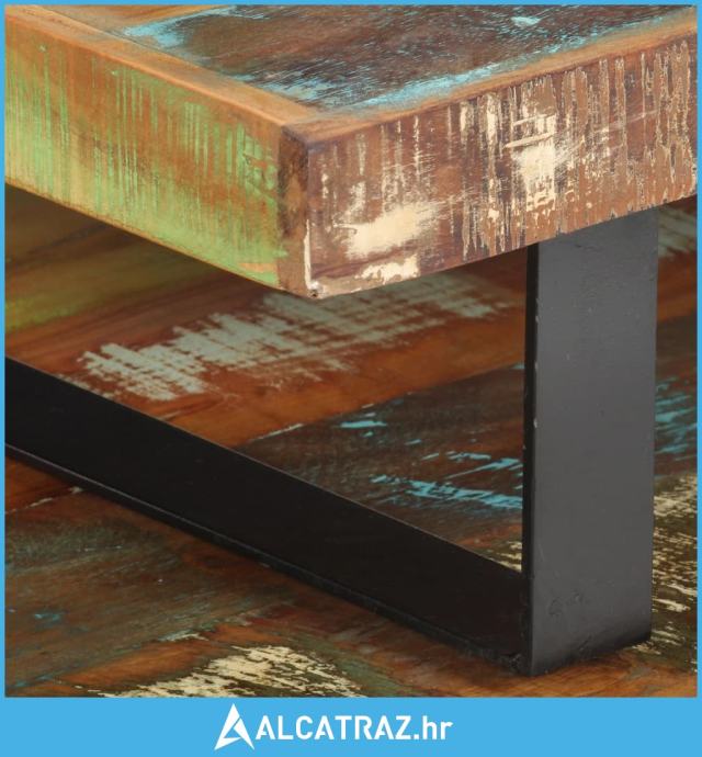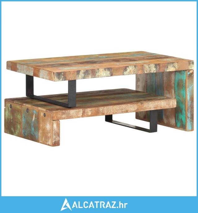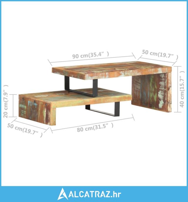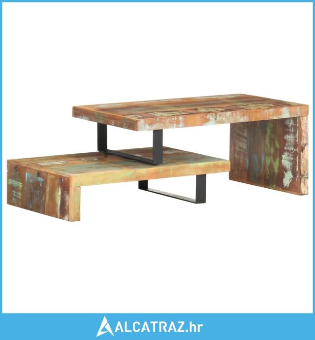 Ovaj središnji stolić napravljen je od masivnog obnovljenog drva koje potječe od greda, podova i potpornih greda iz starih zgrada koje su se rušile i može se sastojati od različitih vrsta drva, kao što su bor, tik, bukva, hrast, cedar, mango, bagrem itd. To znači da obnovljeno drvo sadrži karakteristike tih raznih vrsta drva. Obnovljeno drvo već je odležalo, oštećeno vremenom i osušeno, tako da se ne skuplja ili savija. Ovaj središnji stolić u potpunosti je ručno izrađen, a prekrasni drveni godovi čine svaki komad namještaja jedinstvenim i pomalo drukčijim od drugih. Set stolića sadrži dva dijela, jedinstvenog dizajna. Snažne željezne noge obložene prahom pridonose njegovoj stabilnosti i čvrstoći. Čvrsta stolna ploča savršena je za odlaganje pića, zdjela s voćem ili ukrasa. Uz to, polica ispod stolne ploče pruža dovoljno prostora za čuvanje vaših časopisa, knjiga i dodatnih potrepština organiziranima i na dohvat ruke. Ovaj set stolića za kavu može se podesiti po duljini kako bi odgovarao ostalom uređenju.