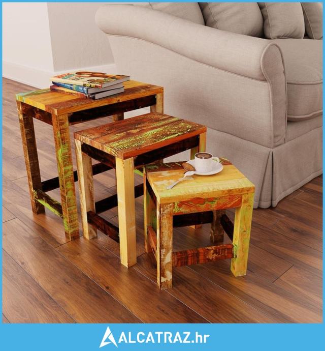 3-dijelni set uklapajućih stolića starinski obnovljeno drvo - NOVO