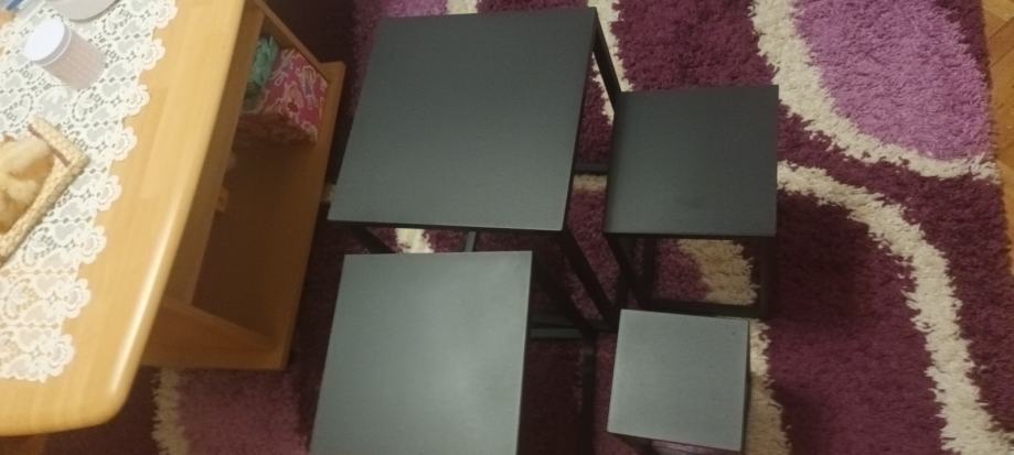 Samo jednom koristeno 1. stolic 30×30 vis. 45 cm 2. stolic 25×25 vis .40cm 3. stolic 20×20 vis. 35cm 4. stolic 15×15 vis.30cm Slozivi jedan na drugi