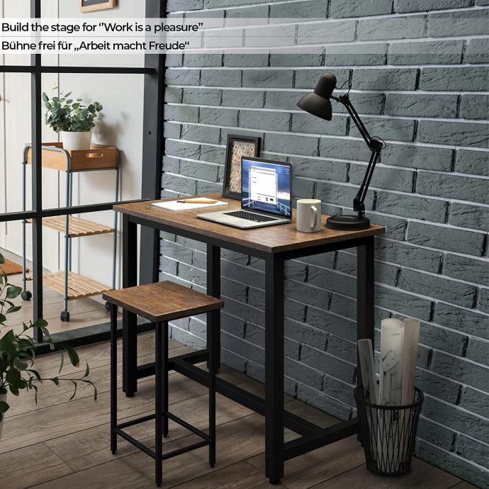 Set barskih stolova - 120 x 60 x 90 cm, s 2 barske stolice, metalni okvir, vintage smeđa/crna, MDF, pult industrijskog dizajna, bistro stol, kuhinjski pult, barski stol, rustikalni, kuhinjski stol.
