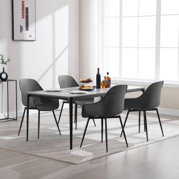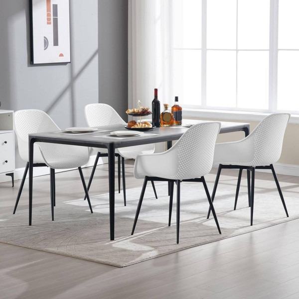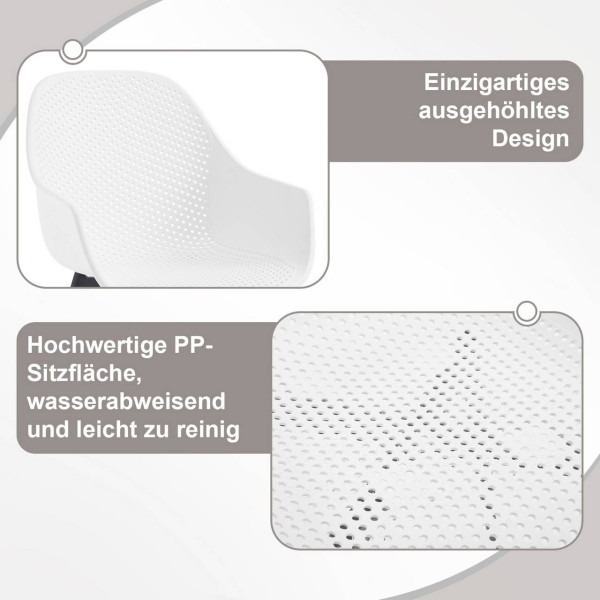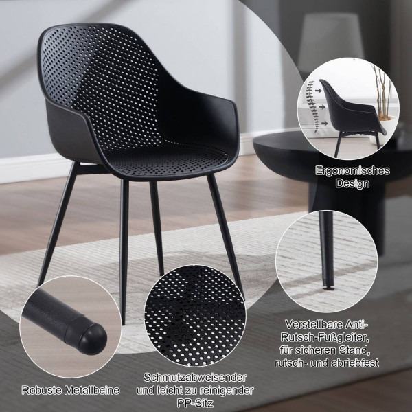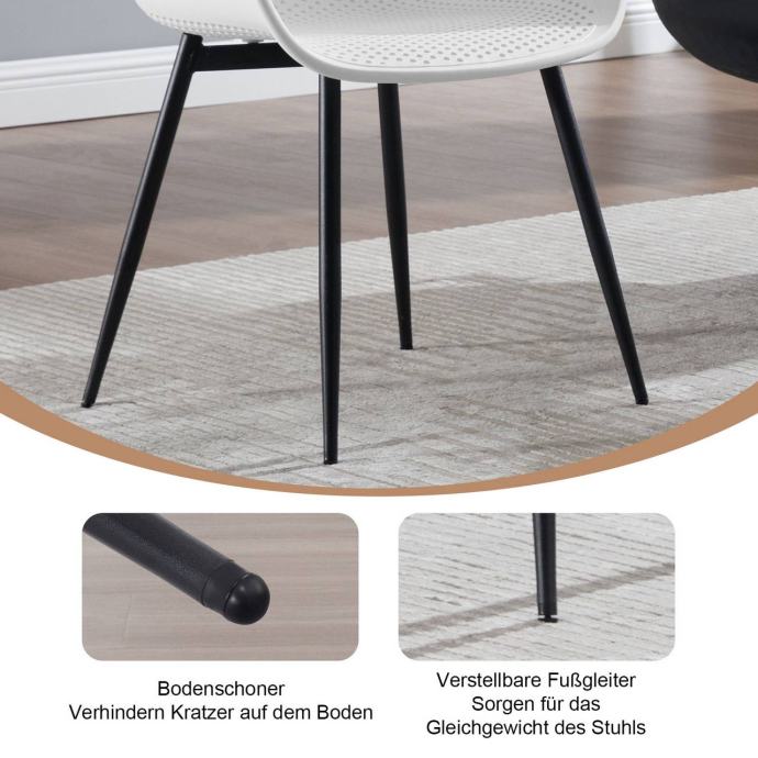 Izrađena od visokokvalitetnog PP-a i metalnih nogu, blagovaonska je stolica čvrsta i dimenzionalno stabilna tako da će trajati dugo vremena, a pritom će zadržati svoju eleganciju i udobnost. Nosivost: 150 kg/kom. Zakrivljeni naslon za leđa i vodopadni rub ergonomski su dizajnirani kako bi optimalno poduprli vaša leđa i pružili visoku udobnost. Prozračni, šuplji naslon daje fotelji dizajnerski dodir. Blagovaonska stolica sa šupljim naslonom unosi moderan dodir u vašu blagovaonicu. Bilo za obiteljske večere, večere s prijateljima ili za uljepšavanje stila sobe, savršen je izbor. PP stolac je vodootporan, odbija prljavštinu, izdržljiv i jednostavan za održavanje. Podesive jastučiće protiv klizanja štite pod od ogrebotina i istovremeno pružaju veću stabilnost. Zahvaljujući jednostavnoj strukturi, ilustriranim uputama i numeriranim dodacima, možete jednostavno sastaviti kuhinjsku stolicu i koristiti je u bilo kojoj prostoriji. Za sve informacije nazovite na broj telefona 092/399-75-19