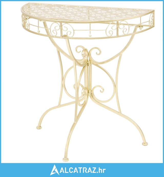 Bočni starinski stolić polukružni metalni 72x36x74 cm zlatni - NOVO