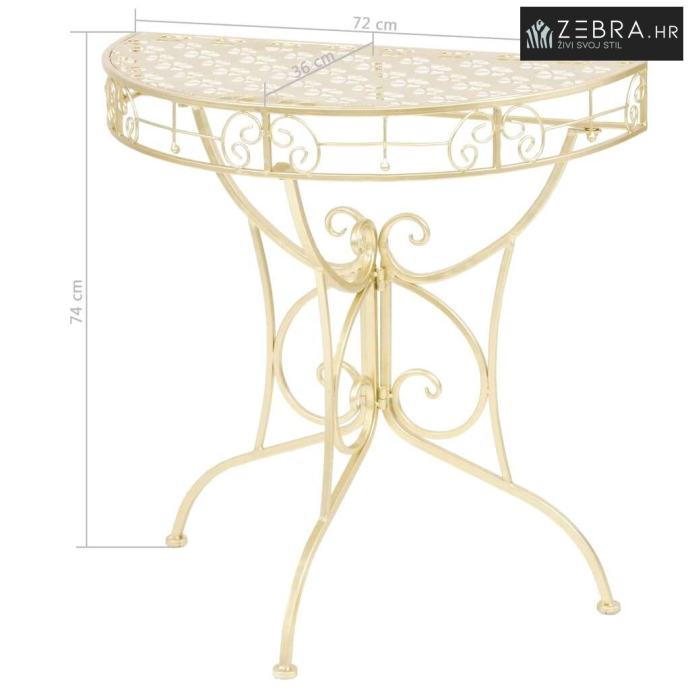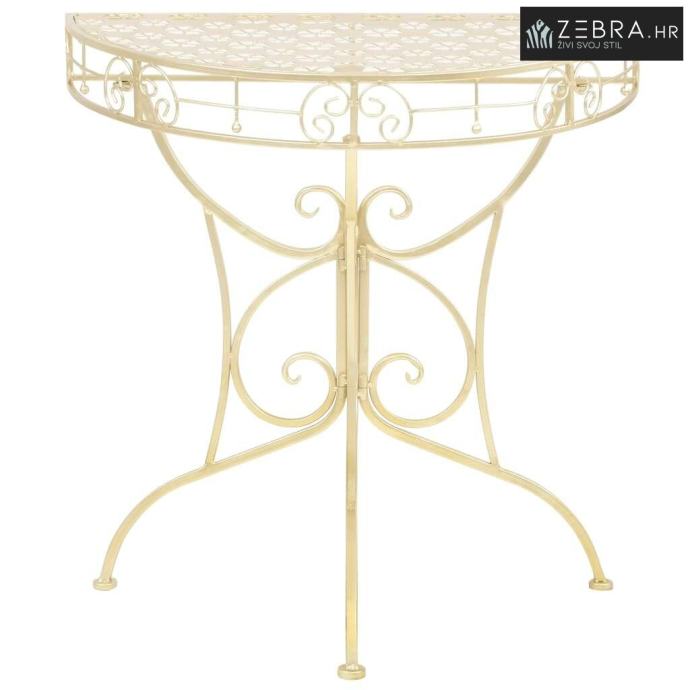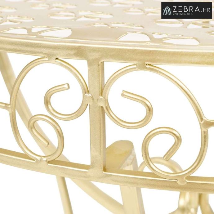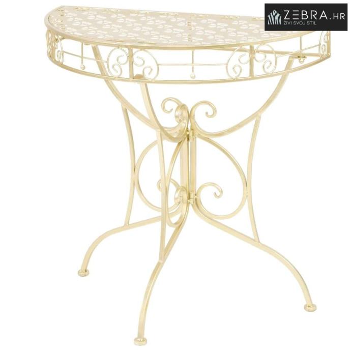 Bočni starinski stolić polukružni metalni 72x36x74 cm zlatni - Zlatno
