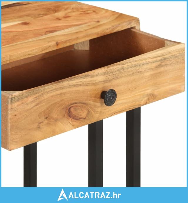 Masivno drvo bagrema tropsko je tvrdo drvo s lijepim godovima koje će trajati dugi niz godina. Ovaj stolić poduprt je čelikom obloženim prahom, zbog čega je stabilan i čvrst. Jedna ladica pruža dodatni prostor za pohranu u kojem možete čuvati svoje stvari.