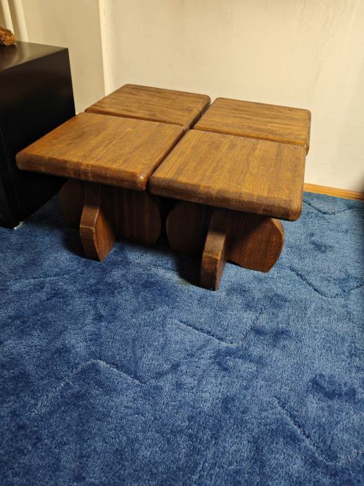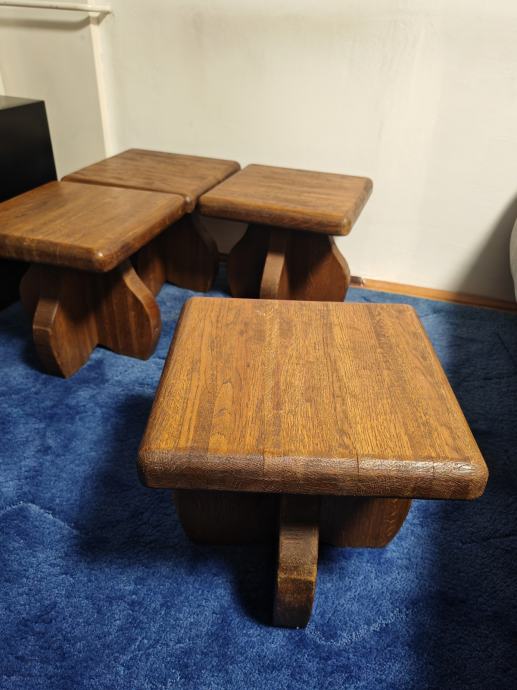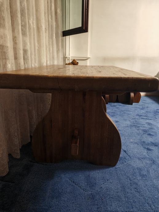 Prodajem drveni stol 75 x 130 cm s četiri stolice, 40 x 40 cm sve izrađeno od masivnog drva tople smeđe boje. Stol ima čvrstu, solidnu konstrukciju s karakterističnim zakrivljenim nogama, a isti dizajn prati i sve četiri stolice. Kompletu daje rustikalan, prirodan izgled koji dobro pristaje uz različite uređaje dnevnog boravka. Prodaje se kao komplet, stol i sve četiri stolice zajedno.