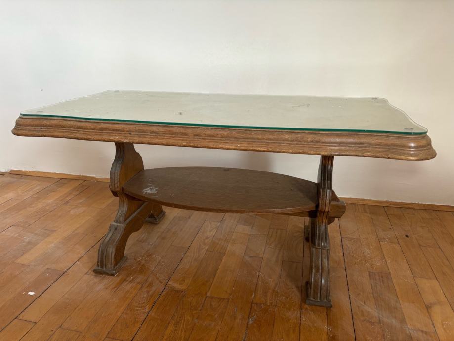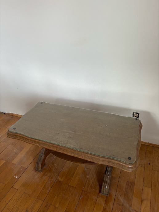 Drveni stolić za dnevni boravak. Puno drvo, staklo kao pokrov.