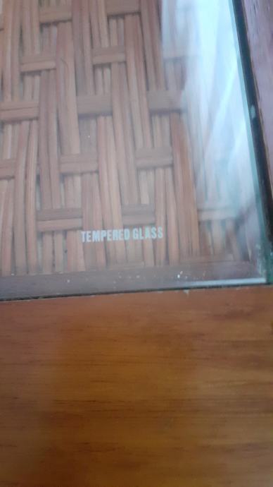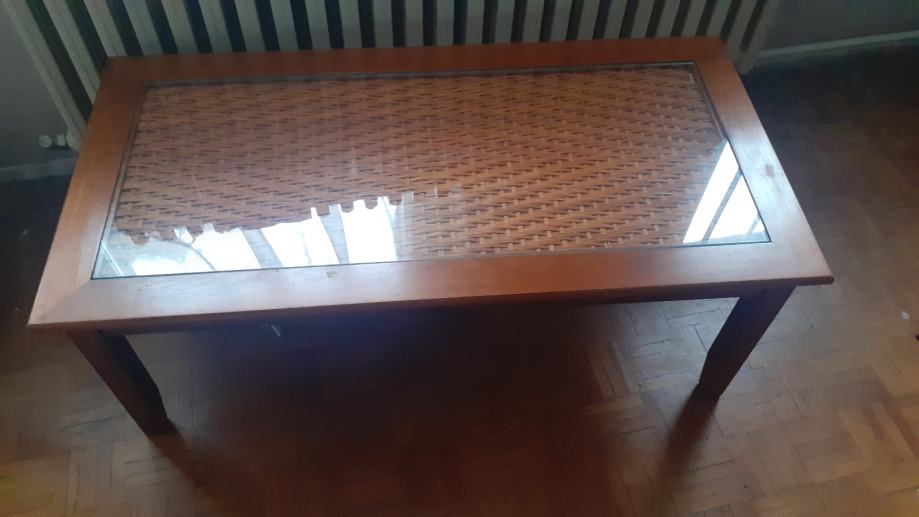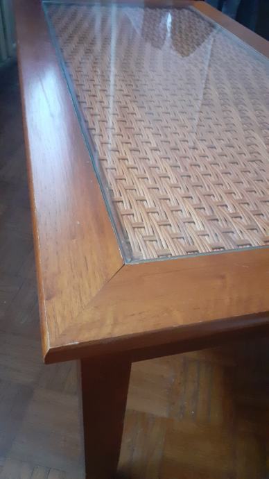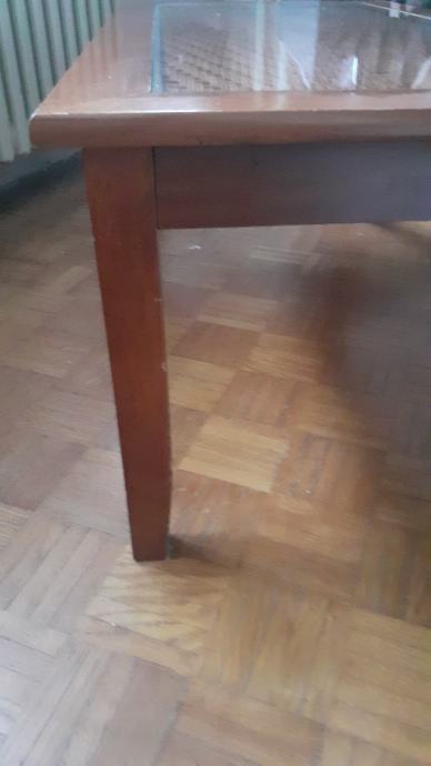 Drveni stolić sa staklenom površinom. U solidnom stanju
