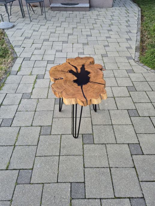 Moderan i prirodan spoj drveta bagrema i epoxy smole koji unosi toplinu i luksuz u svaki prostor. Stolić je izrađen od masivnog komada drveta s očuvanim prirodnim rubom te crnom epoxy smolom u sredini. Metalne noge daju stabilnost i elegantan industrijski izgled.