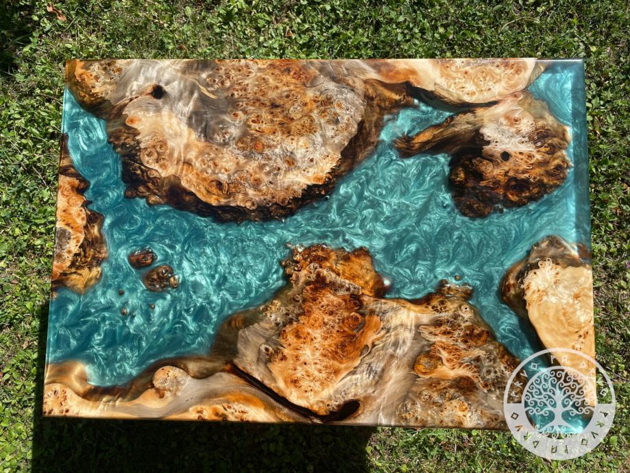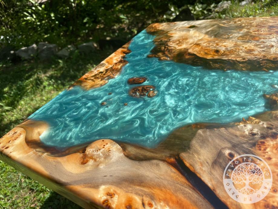 Stolić za dnevni boravak od drveta jagnjeda (crna topola) i epoxy smole