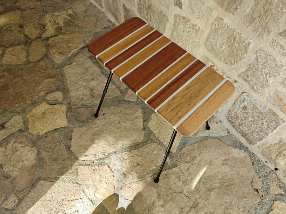 Na prodaju: Unikatni, ručno rađeni sklopivi stolić od punog drva i epoksidne smole