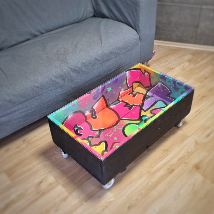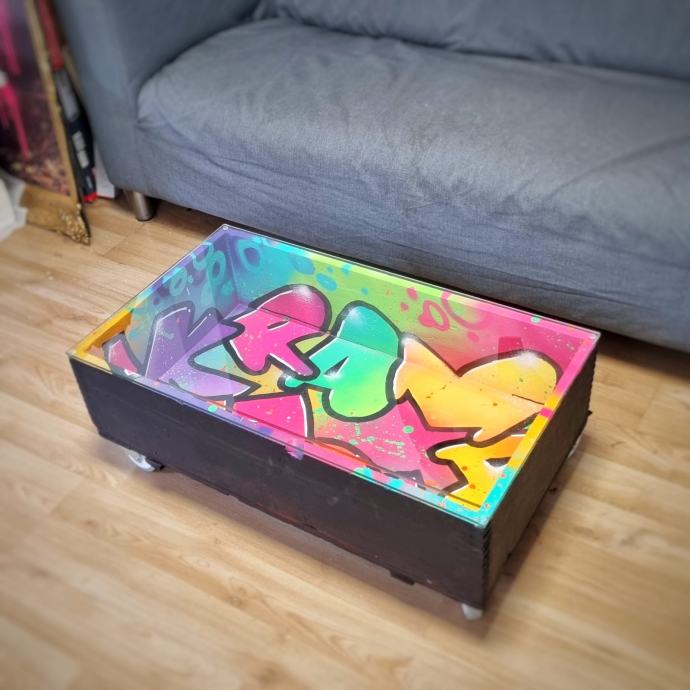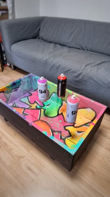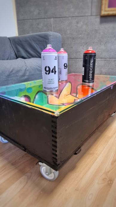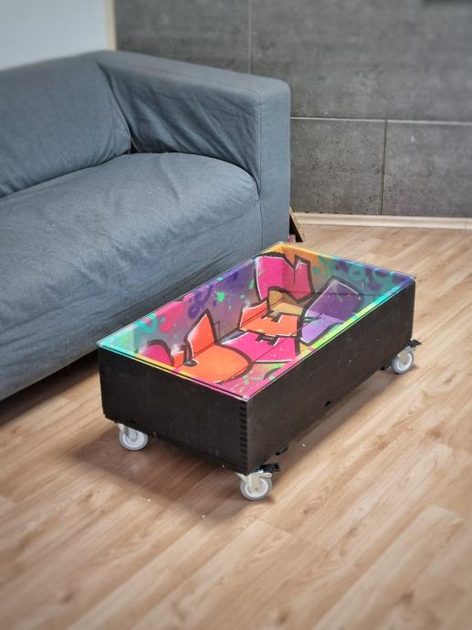 Od stare kutije za barut smo napravili stolić za kavu. Graffiti - 2Fast. Dimenzije: duljina 78 cm, širina 44,5 cm, visina 30 cm
