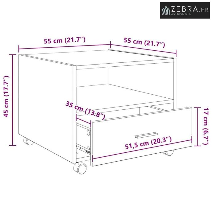 Sveukupne dimenzije: 55 x 55 x 45 cm (D x Š x V)