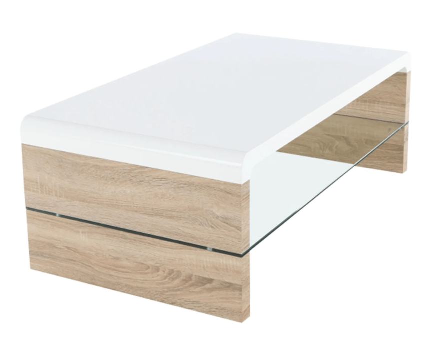 Elegantan i moderan klub stolić KONTEX u kombinaciji dekora sonoma hrasta i bijelog visokog sjaja.