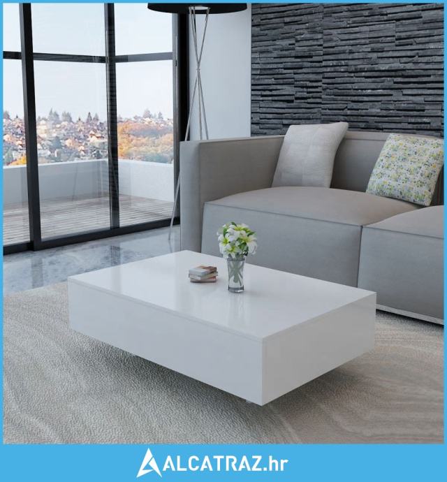 Ovaj bijeli pravokutni stolić za kavu ima moderan, elegantni izgled i idealno će se uklopit u vaš dom. Može se koristiti kao stolić za kavu ili bočni stolić.