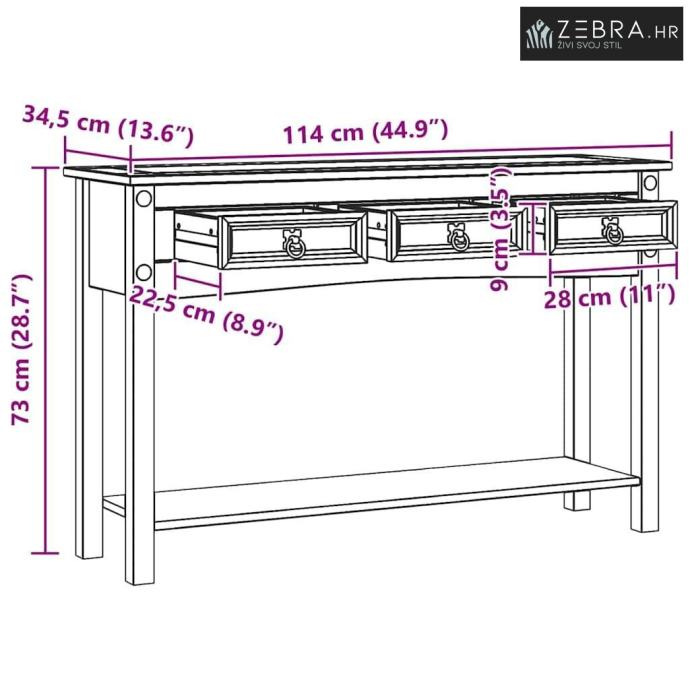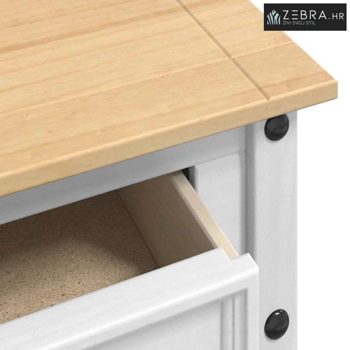 Masivna borovina: Ovaj stolić je od čvrste borovine, otporan na svakodnevno korištenje i zadržava svoj lijep izgled. Kvalitetan materijal unosi dozu luksuza u svaki dom s bogatom teksturom i prirodnim završnim slojem, osiguravajući dugovječnost i lako održavanje.