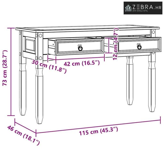 Sveukupne dimenzije: 115 x 46 x 73 cm (Š x Dub x V)