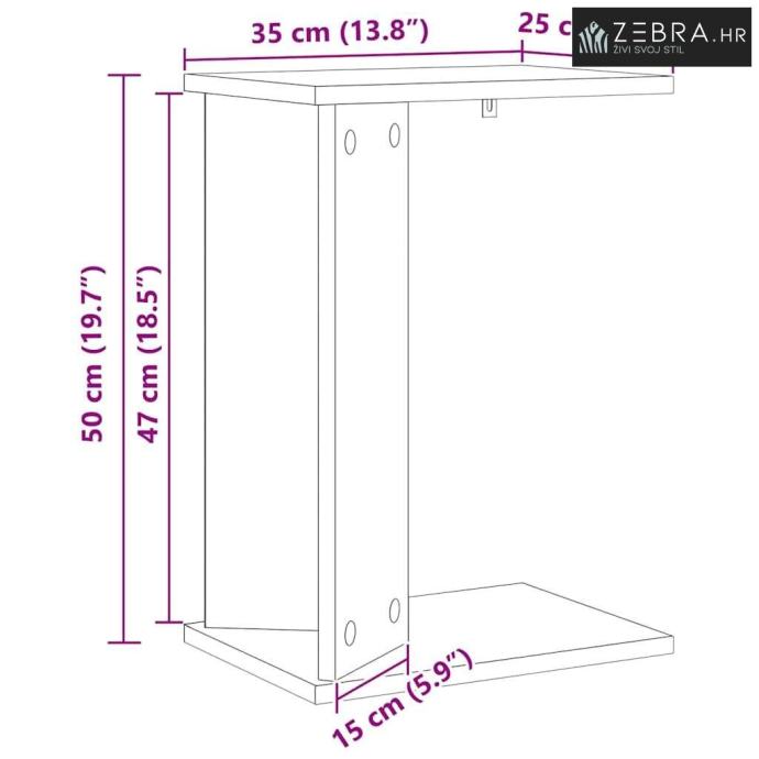 Ovaj moderni stolić za kraj sjajno kombinira funkcionalnost i suvremeni stil, savršeno se uklapa u svaki dnevni boravak. Izrađen je od konstruiranog drva, pravokutnog je oblika s čestim linijama, što ga čini elegantnim obogaćenjem vašeg doma. Savršen je za one koji vole jednostavnost, nudi moderan i suptilan izgled i pruža praktična rješenja za organizaciju, tako da je prostor uvijek uredan. Njegova svestranost omogućava da se koristi kao mjesto za lampu uz kauč ili da se izlažu dekorativni komadi koji poboljšavaju estetsku privlačnost sobe.
