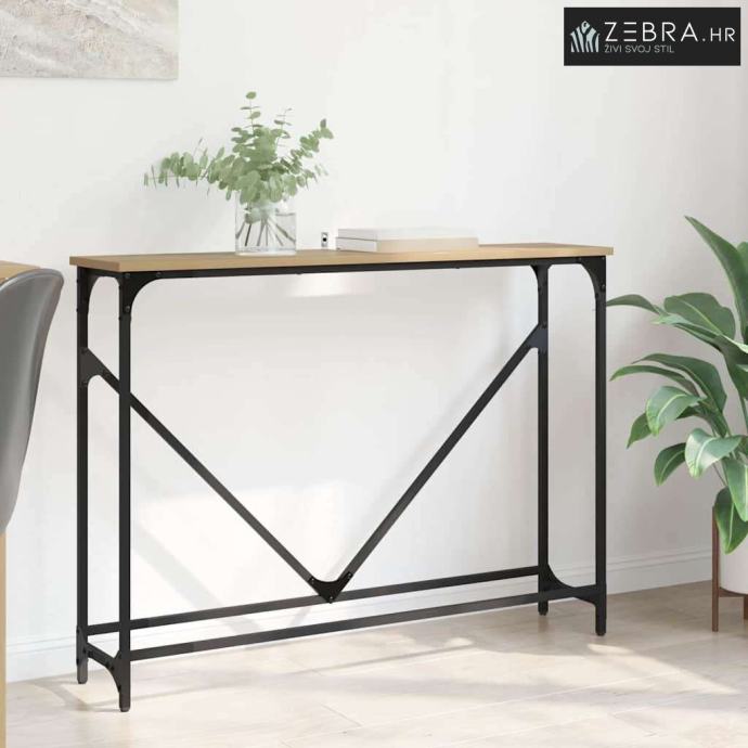 Ova moderna konzola donosi industrijski dodir u vaš životni prostor. Ima dimenzije 102 x 23 x 75 cm, izrađena je od izdržljivih materijala, uključujući čvrste čelične noge i izdržljiv gornji dio od kompozitnog drva. Minimalistički stil se lijepo uklapa u urbane loftove, čineći je savršeno svestranim dodatkom svakom domu.