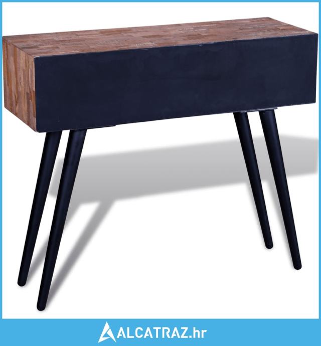 Ovaj konzolni stol od obnovljene tikovine je bezvremenski dodatak za vaš dom. Njegova čvrsta drvena površina pruža stabilno i sigurno mjesto za izlaganje ukrasnih predmeta, uokvirenih fotografija ili biljaka. Manje predmete poput ključeva, notesa, olovaka i drugih stvarčica možete pohraniti u tri prostrane ladice. Stol se također može koristiti i kao konzolni kabinet, komoda, visoka komoda, bočni stol itd.