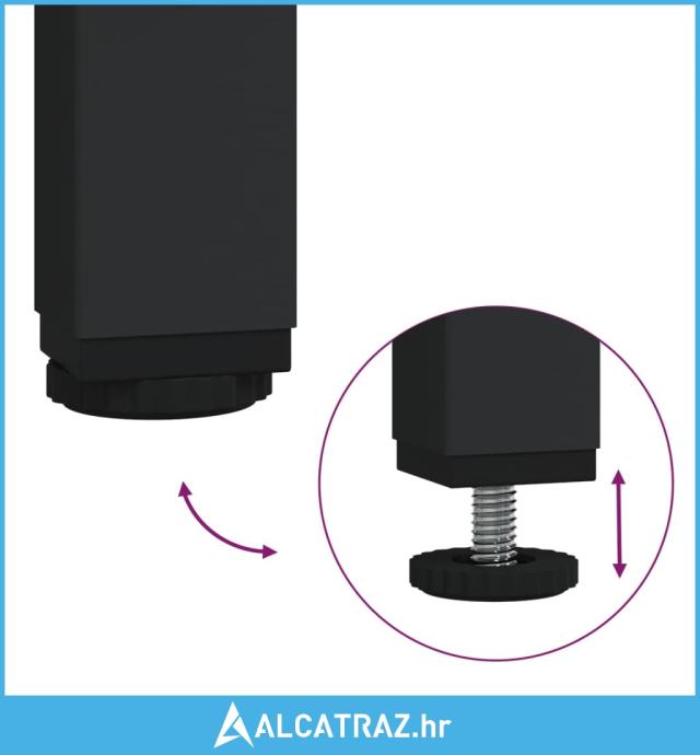 - Podesive noge: Osam podesivih nogu s plastičnim jastučićima održava stolić za hodnik u ravnoteži na neravnom terenu i povećava stabilnost.