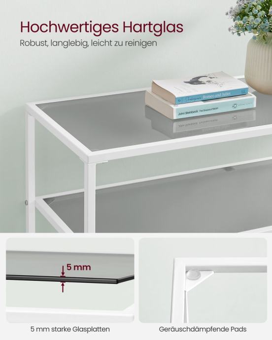 2 police, mnogo mogućnosti: Koje predmete želite prikazati na ovoj stojećoj polici? Putnički suveniri? Biljke u saksiji? Uopće nema problema. Kvalitetno kaljeno staklo, čvrst metalni okvir - svaka polica ove police može izdržati težinu do 20 kg.