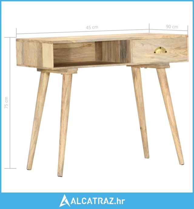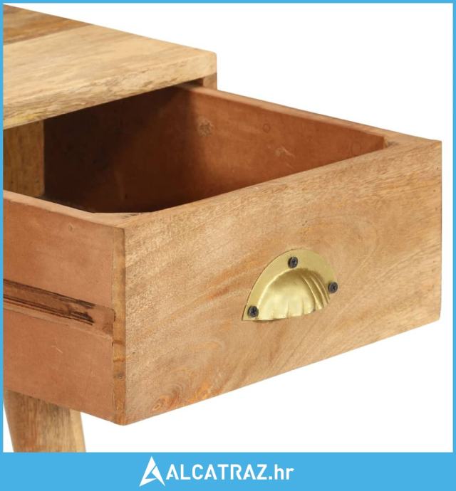 Stol je napravljen od masivnog drva manga s prirodnim premazom, koje je izdržljivo i lijepo. Svaki korak procesa izveden je s najvećom pažnjom, bilo da je riječ o brušenju ili lakiranju. Prekrasni drveni godovi čine svaki komad namještaja jedinstvenim i pomalo drukčijim od sljedećeg. Čvrsta stolna ploča idealna je za izlaganje ukrasnih predmeta, okvira s fotografijama ili biljaka lončanica. Ladica koja glatko klizi i jedan otvoreni odjeljak mogu se upotrebljavati za spremanje malih predmeta kao što su ključevi, bilježnice, olovke i druge sitnice. Jednostavno se čisti i održava vlažnom krpom.