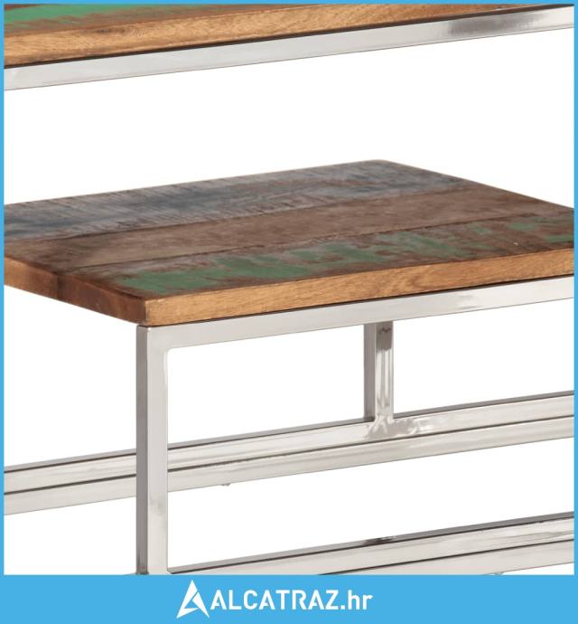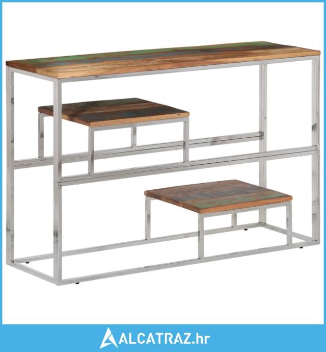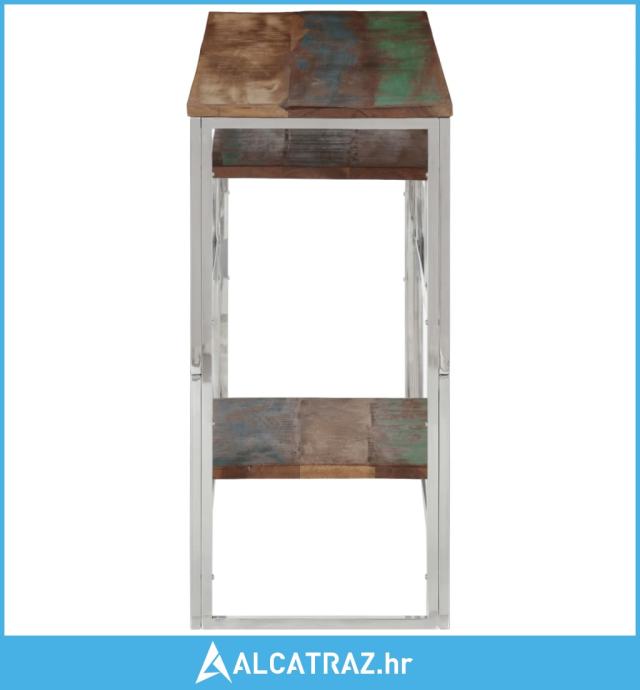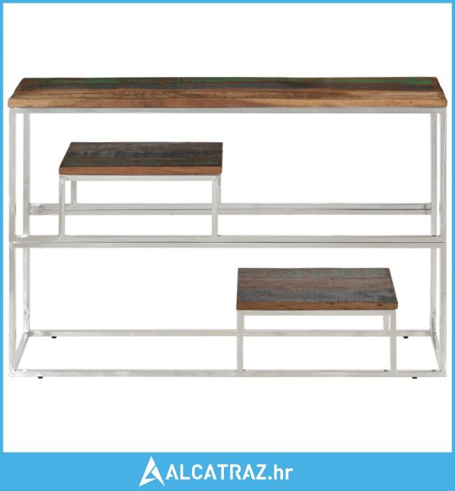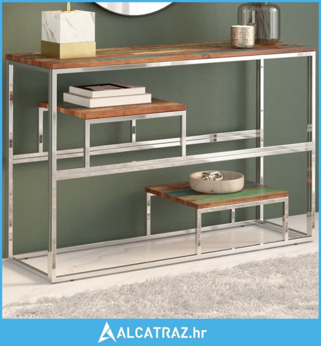 Konzolni stol srebrni od nehrđajućeg čelika i obnovljenog drva - NOVO