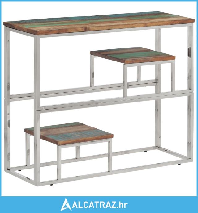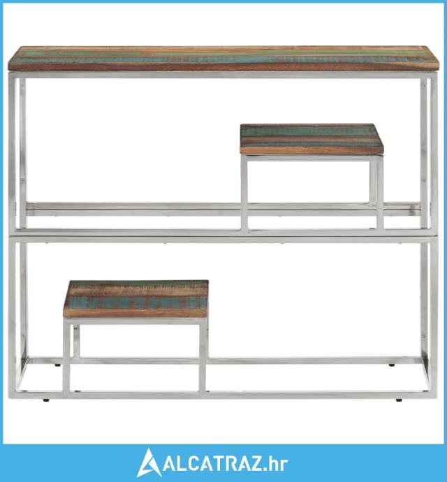 Konzolni stol srebrni od nehrđajućeg čelika i obnovljenog drva - NOVO