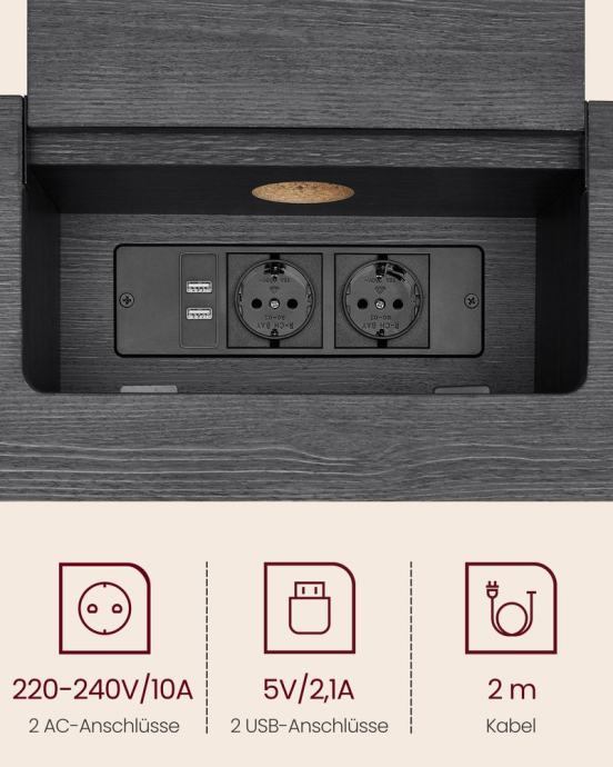 S 2 priključka za izmjeničnu struju i 2 USB priključka možete istovremeno puniti svoje uređaje kao što su lampa, telefon, tablet. Pričvrstite priloženi štitnik protiv prevrtanja za veću sigurnost. Uključeni kutni štitnici štite od bolnih udaraca i tako osiguravaju sigurno okruženje za korištenje. Čelični okvir u kombinaciji sa snježnobijelom iveralom čini ovaj tanki konzolni stolić izuzetno atraktivnim komadom namještaja koji će zajamčeno poboljšati izgled vašeg predsoblja. Razdjelnik je skriven u lako dostupnom pretincu, a rupa za kabel na stražnjoj strani pomaže u usmjeravanju kabela ispod kako bi ploča stola bila uredna. Na ulazu za sve što vam treba prije izlaska; iza kauča da napunite svoj mobitel ili pored zida da izložite svoje ukrase. S 1 gornjom pločom i 2 pretinca, ovaj stolić zadovoljava vaše različite potrebe. Za sve informacije nazovite na broj telefona 092/399-75-19