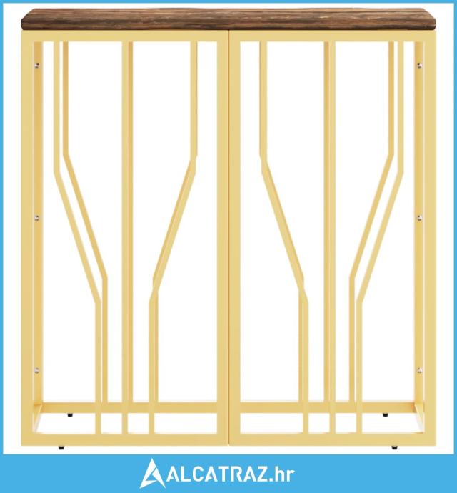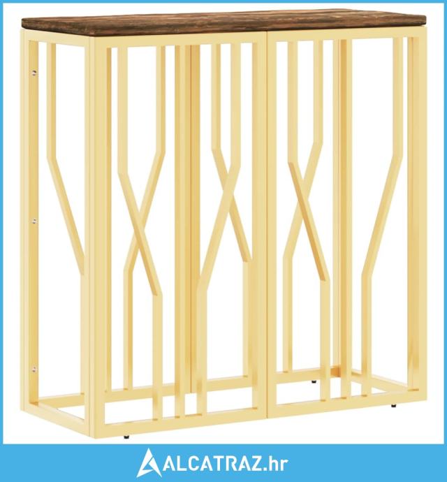 Konzolni stol zlatni od nehrđajućeg čelika i obnovljenog drva - NOVO