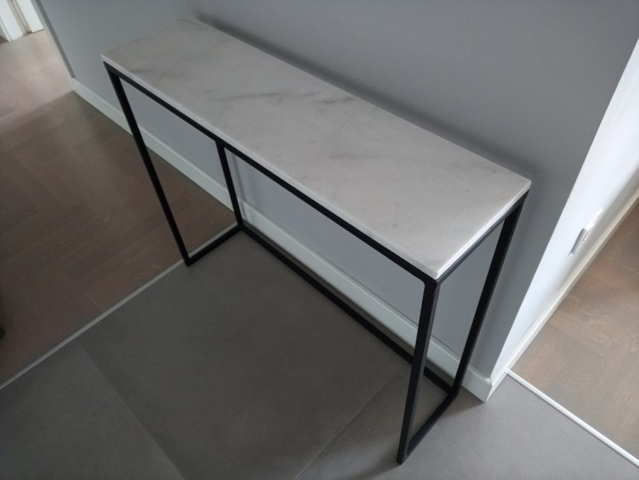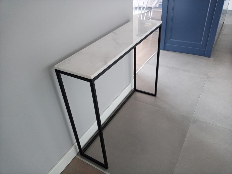 Konzolni stolić LTD ART 95x25 cm ,visine 78cm.Materijal izrade:čelične kvadratne cijevi u mat crnoj boji.Gornja ploča:prirodni mramor Carara Bianco 2 cm.