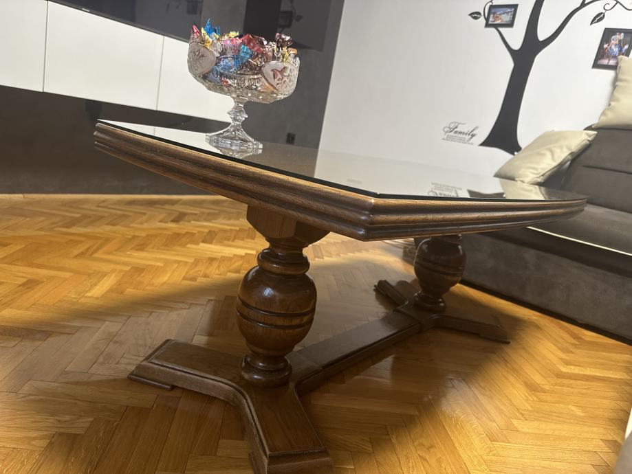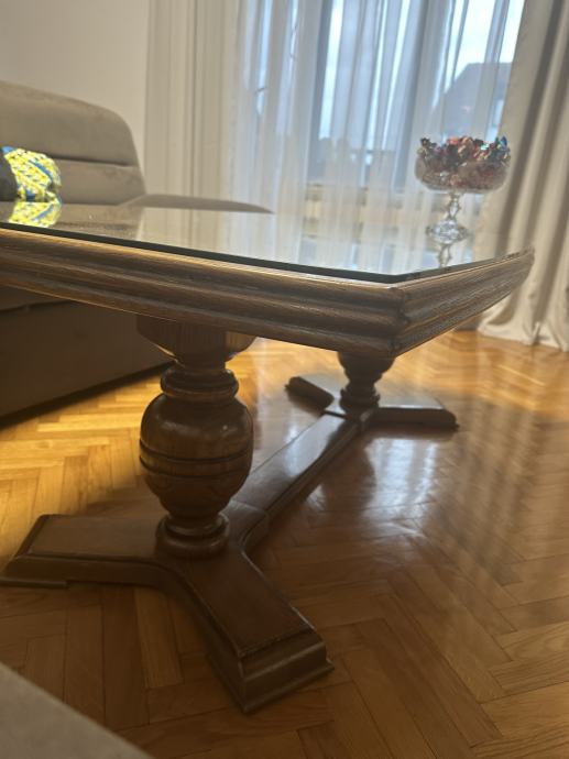 Prodajem kvalitetan drveni stol za dnevni boravak. Maksimalno očuvan. Uz stol dolazi i staklo rađeno po mjeri za taj stol.