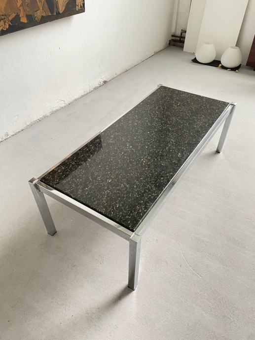 Mid-century modern, kromirano-granitni stol za dnevni boravak iz ‘70ih